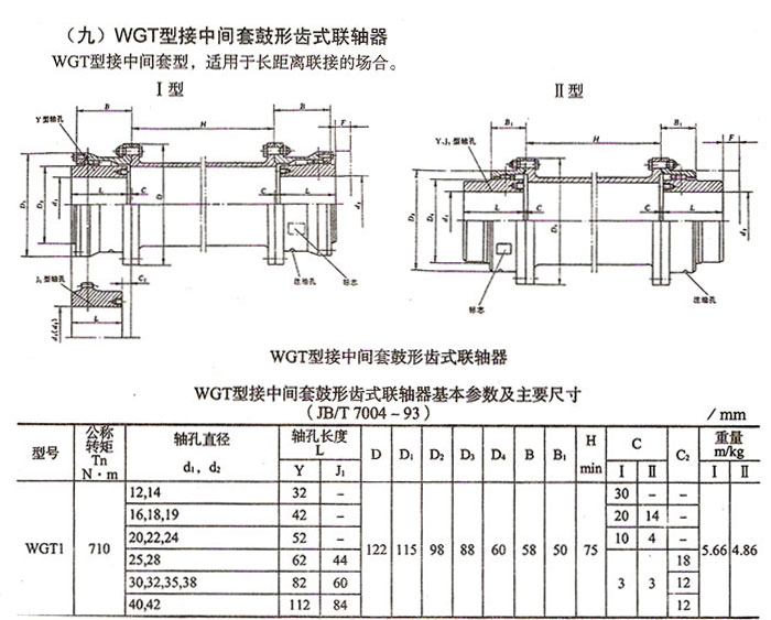 WGT型接中間套鼓形齒式聯(lián)軸器