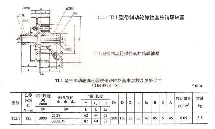 TLL帶制動輪彈性套柱銷聯(lián)軸器